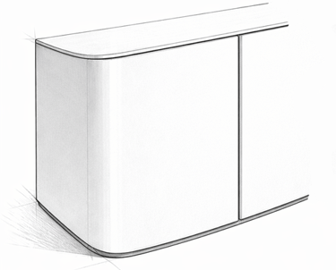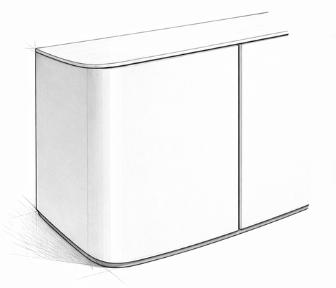 El aparador Quince busca una geometría evocadora de otras épocas, donde las puertas se integran en el volumen como una prolongación del lateral. Define una silueta envolvente, limpia y precisa, en la que las puertas no interrumpen la forma, sino que la continúan.