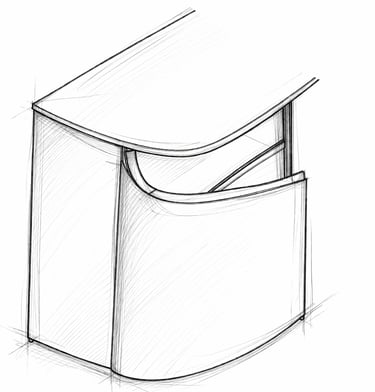 El desarrollo del diseño profundiza en el sistema de apertura, donde las puertas se desplazan a un eje más atrasado de la posición habitual. Esta solución permite que la curvatura se mantenga coherente en todo momento, aportando fluidez a la pieza.