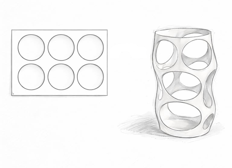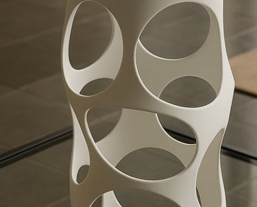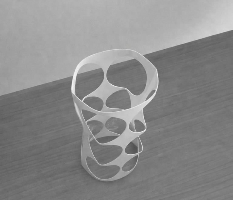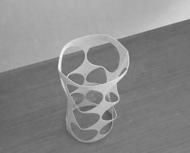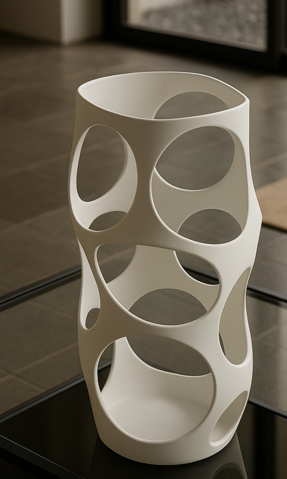 Realizado mediante impresión 3D, propone una forma innovadora de entender el objeto, con una geometría orgánica y continua difícil de lograr con otros procesos.