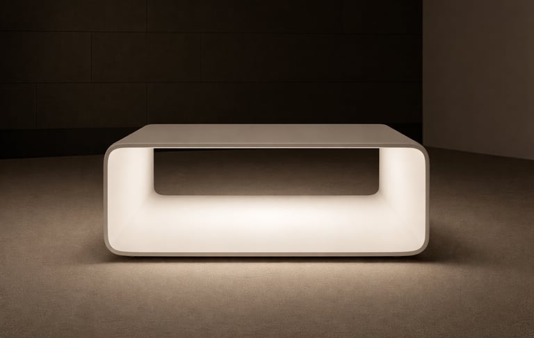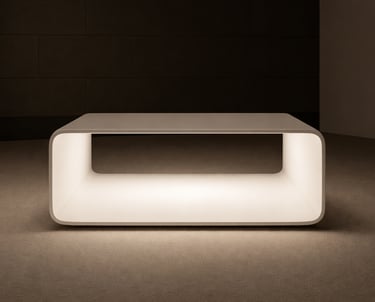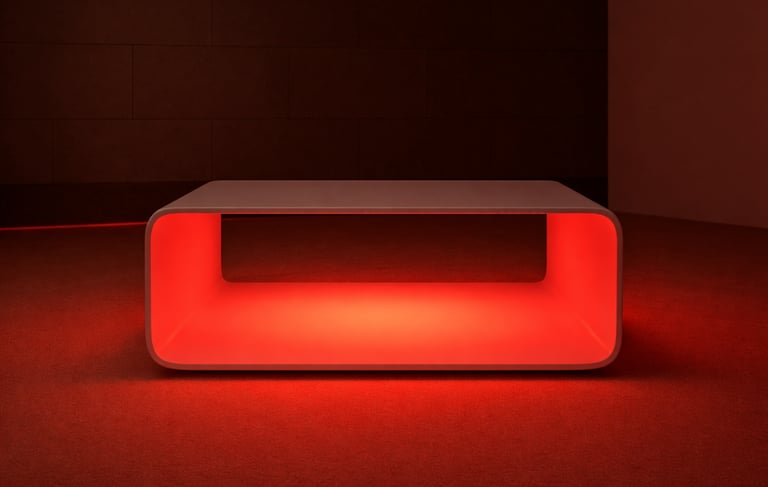 Mesa de centro de líneas suaves y geometría continua, concebida como una pieza escultórica que combina funcionalidad y atmósfera. Fabricada en chapa metálica lacada en blanco, su volumen hueco integra un sistema de iluminación LED dual —luz blanca y luz ambiental roja (RLT)— que transforma el espacio con sutileza. La batería oculta permite un uso completamente autónomo, reforzando su carácter limpio, versátil y contemporáneo.