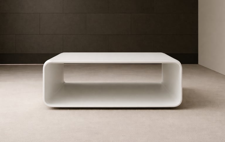 Luz blanca suave y uniforme que realza la pureza del volumen, aportando claridad y una atmósfera serena y elegante.